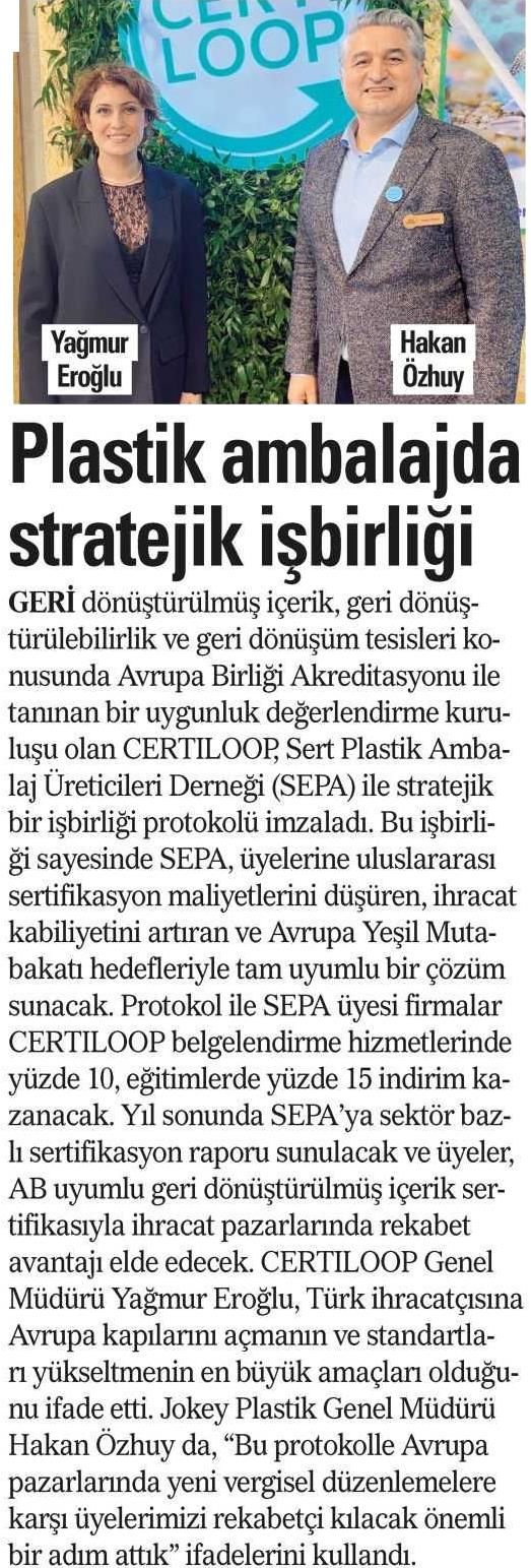 STRATEGIC COLLABORATION BETWEEN CERTILOOP AND SEPA FOR THE TURKISH PLASTIC PACKAGING INDUSTRY