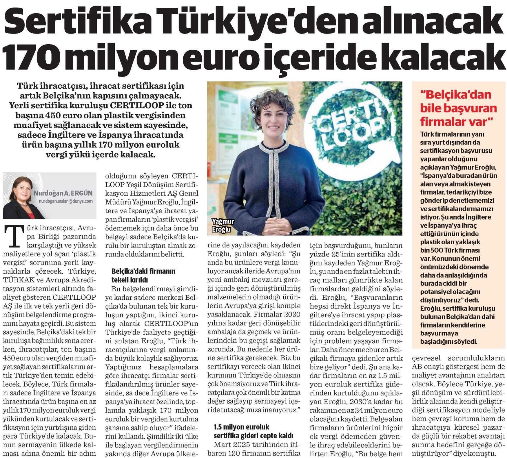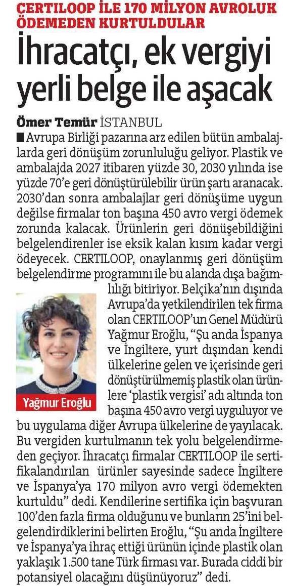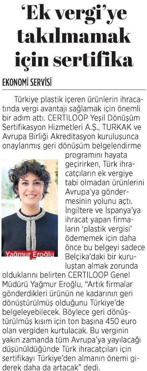 CERTILOOP General Manager Yağmur Eroğlu noted that companies exporting to the United Kingdom and Spain previously had to obtain this certification exclusively from an organization based in Belgium in order to avoid the so-called “plastic tax.” She stated: